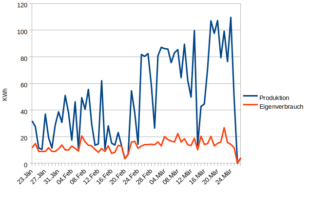 Die aktuellen Zustandsdaten (heutiger Produktionsverlauf, Tages-Monats-und Jahressummen) ist auf dieser Website bzw. hier dokumentiert.
